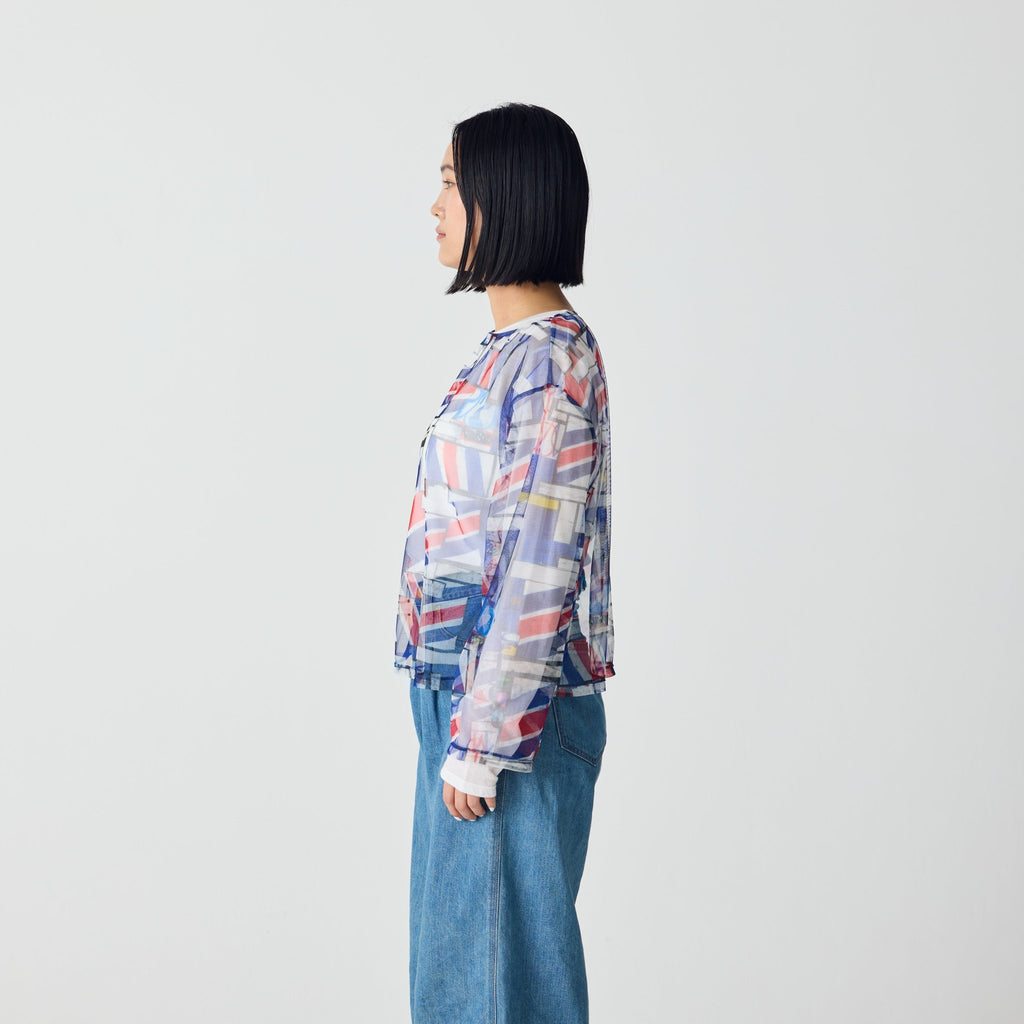 Tシャツとデニムのようなシンプルなスタイルにさらりと重ねるだけで、華やかかつ繊細な印象を演出。無地のインナーでアートを主役にしたり、ロゴやイラスト入りのTシャツと重ねてアートとのレイヤードを楽しんだりと、幅広いスタイリングが可能です。